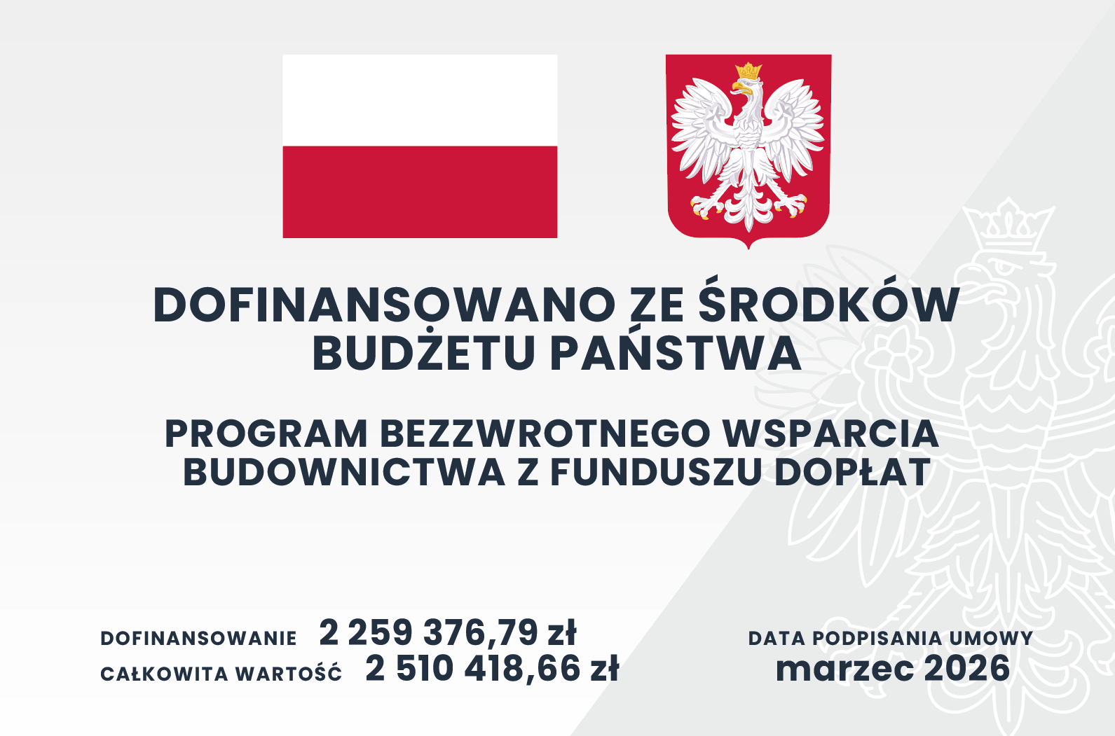 Projekt realizowany jest ze środków budżetu państwa, w ramach rządowego programu "Bezzwrotne wsparcie budownictwa z Funduszu Dopłat."